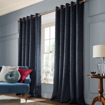 Laura Ashley Barley Embossed Ready Made Eyelet Curtains Midnight