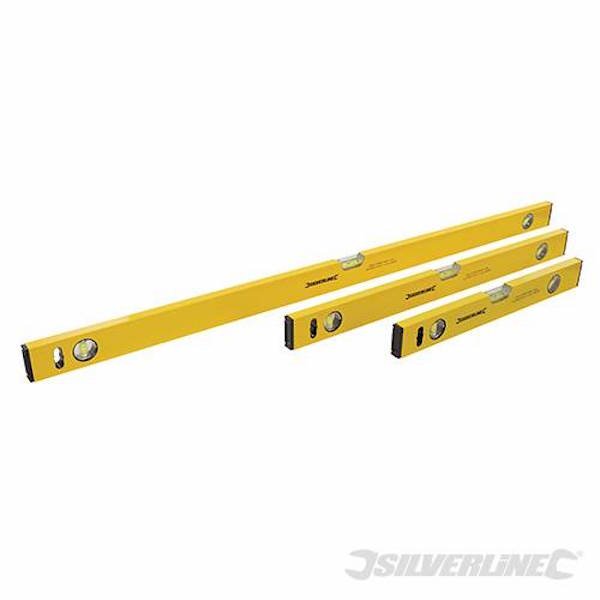 Builders Level Set 3 Pce Manufactured from aluminium with protective end caps. 45°, 90° and 180° vials. Hanging holes for storage. 50 x 20mm box section. 400, 600 & 1000mm
