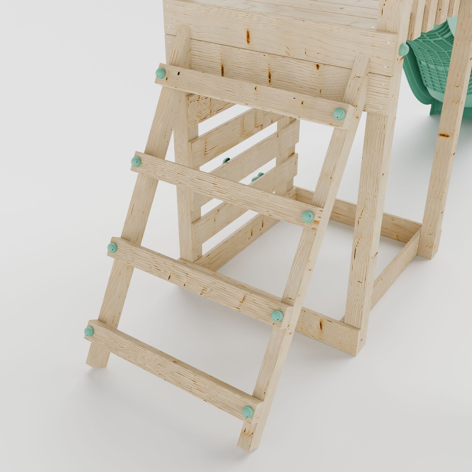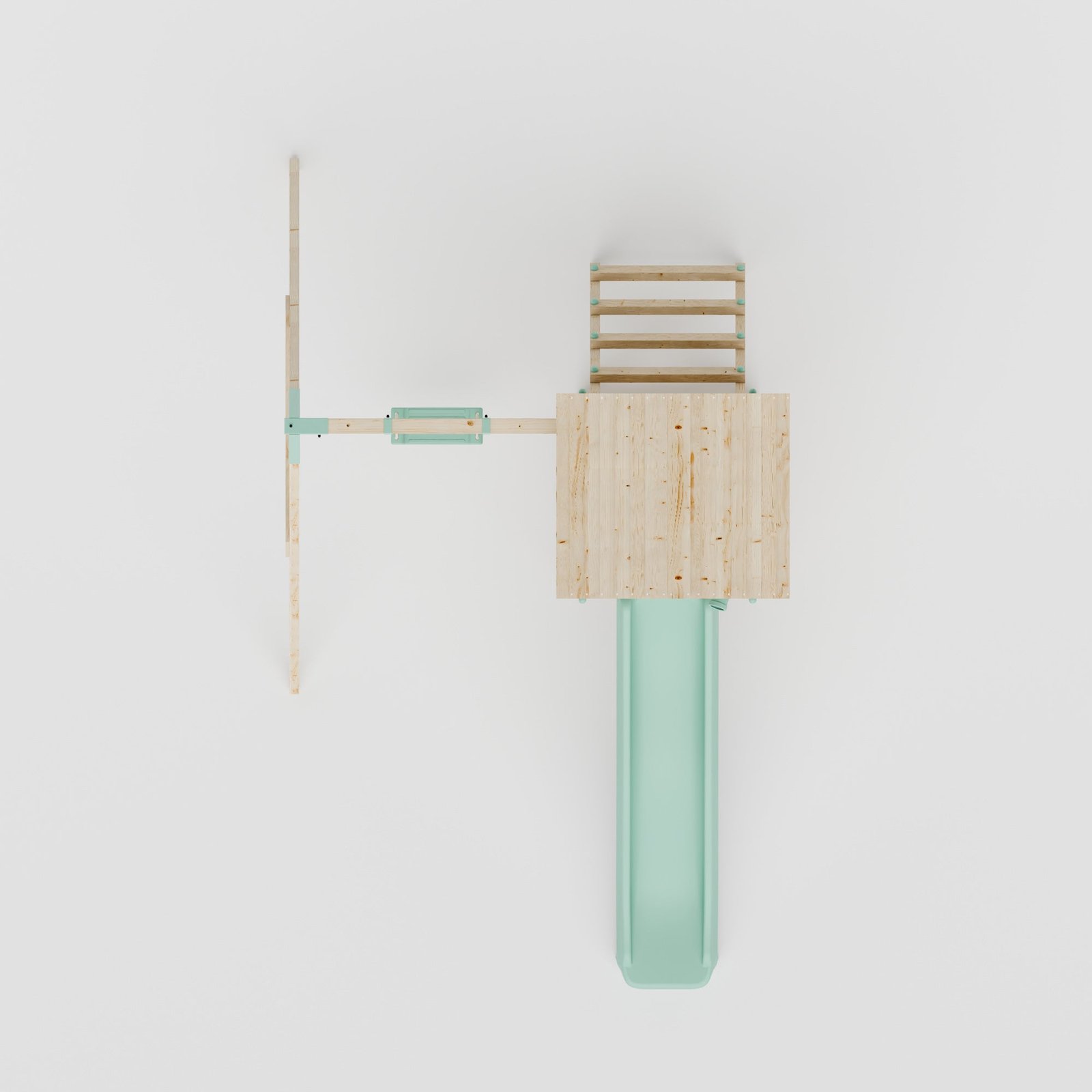 Designed with a natural Scandinavian inspired look the neutral wood mixes perfectly with the pastel blue accessories decorating and supporting the climbing frame. Making it not only a safe structure during your child’s development but also an aesthetically pleasing addition to any garden.