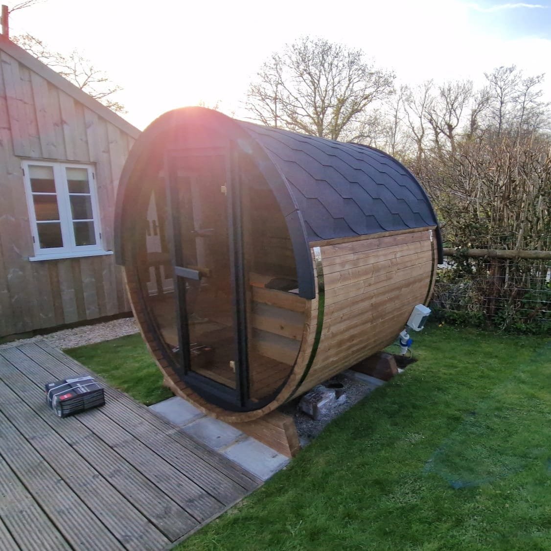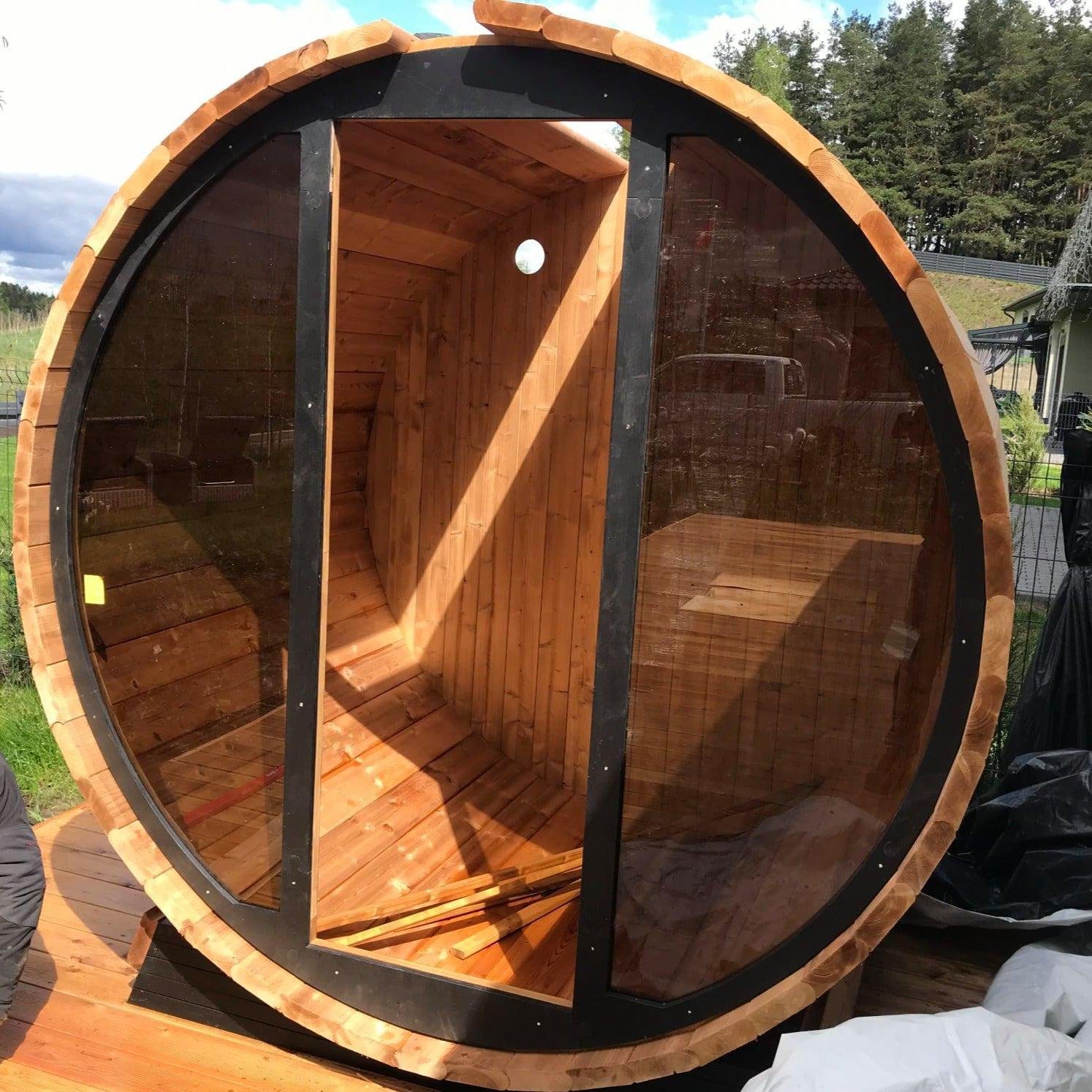 The sauna comes as a flat-pack kit and requires assembly, instructions are provided however be advised this is a fairly technical build, we can build on site for you at extra cost (please enquire) and this is advisable where possible and budget allows. We can also supply fully built at extra cost, if delivered fully built it requires off-load by the customer and weighs upwards of 750kg.
