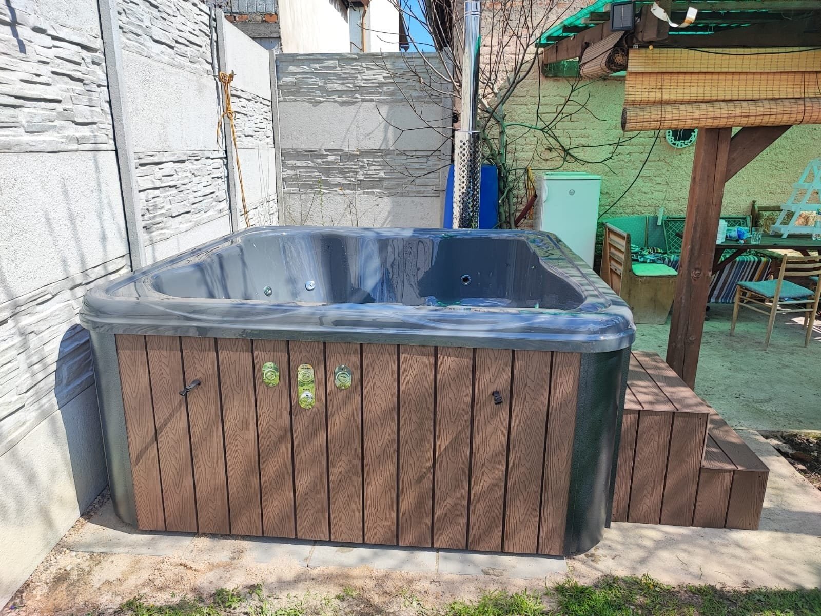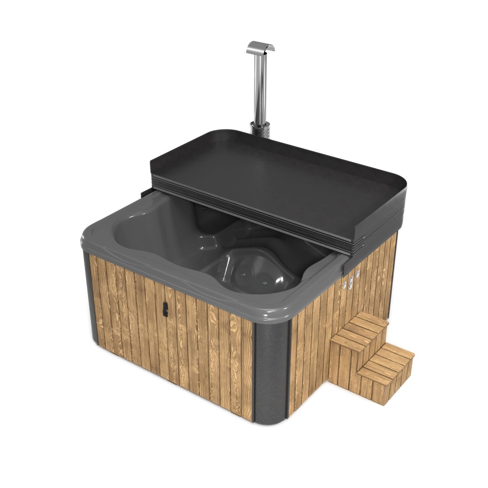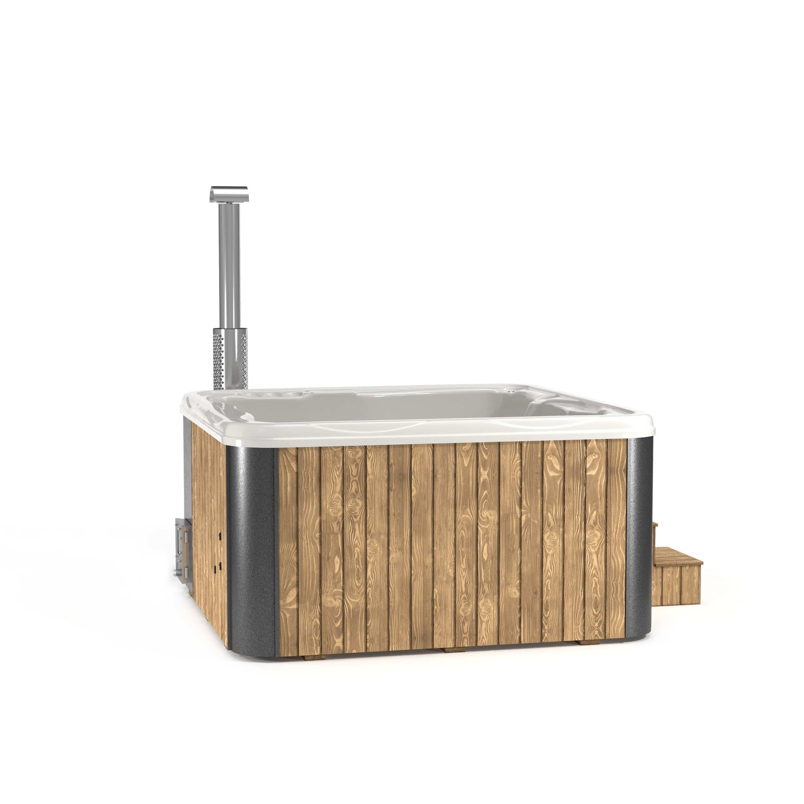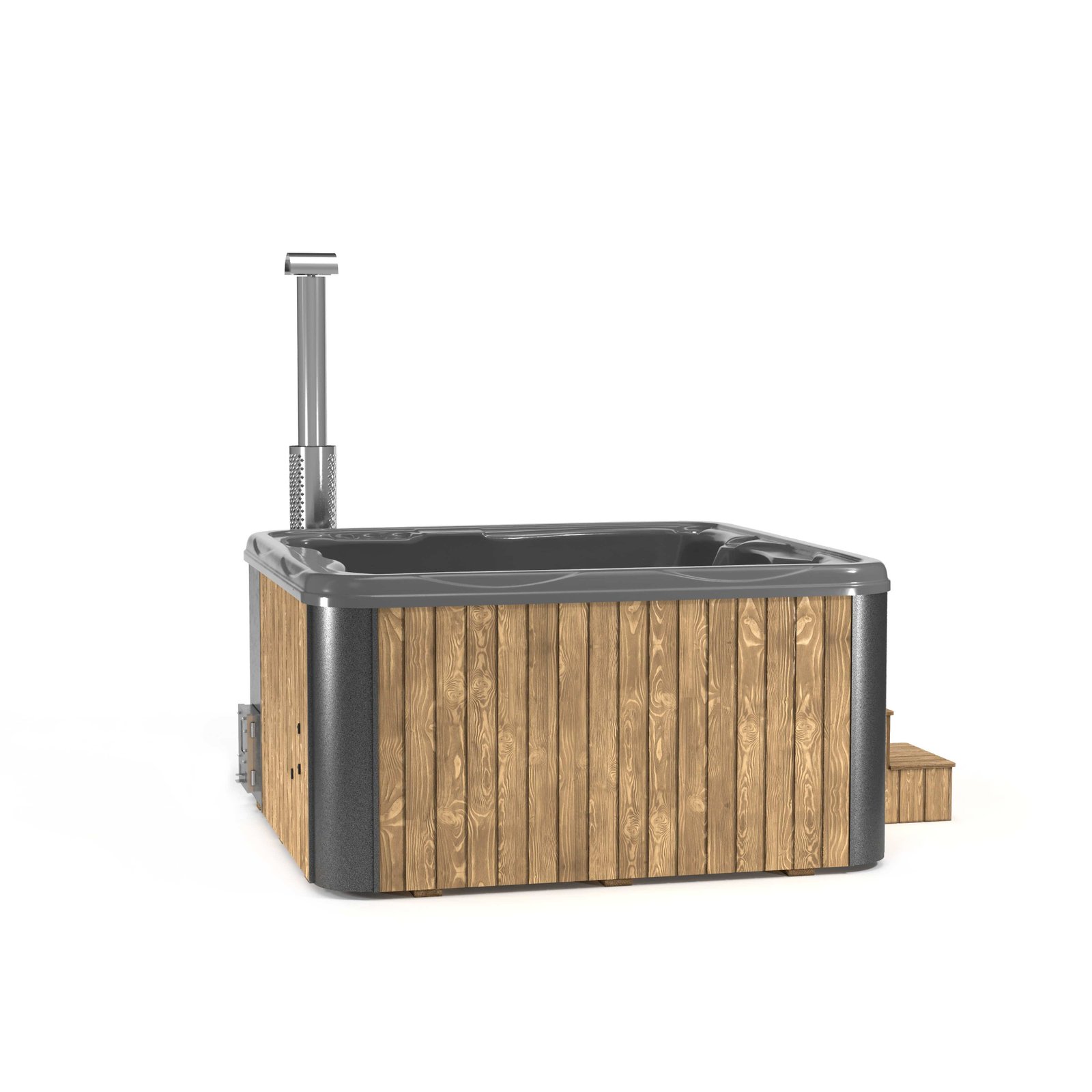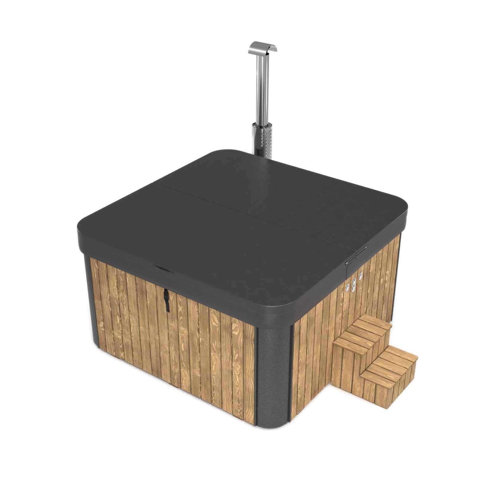 These tubs are clad in Scandinavian spruce, thermowood or WPC composite and are available with an array of extras, this tub is designed for 4-5 people, why not add a Wooden Gazebo over it and add welcome shelter and check out our Timber Decking Kits to site your tub on.