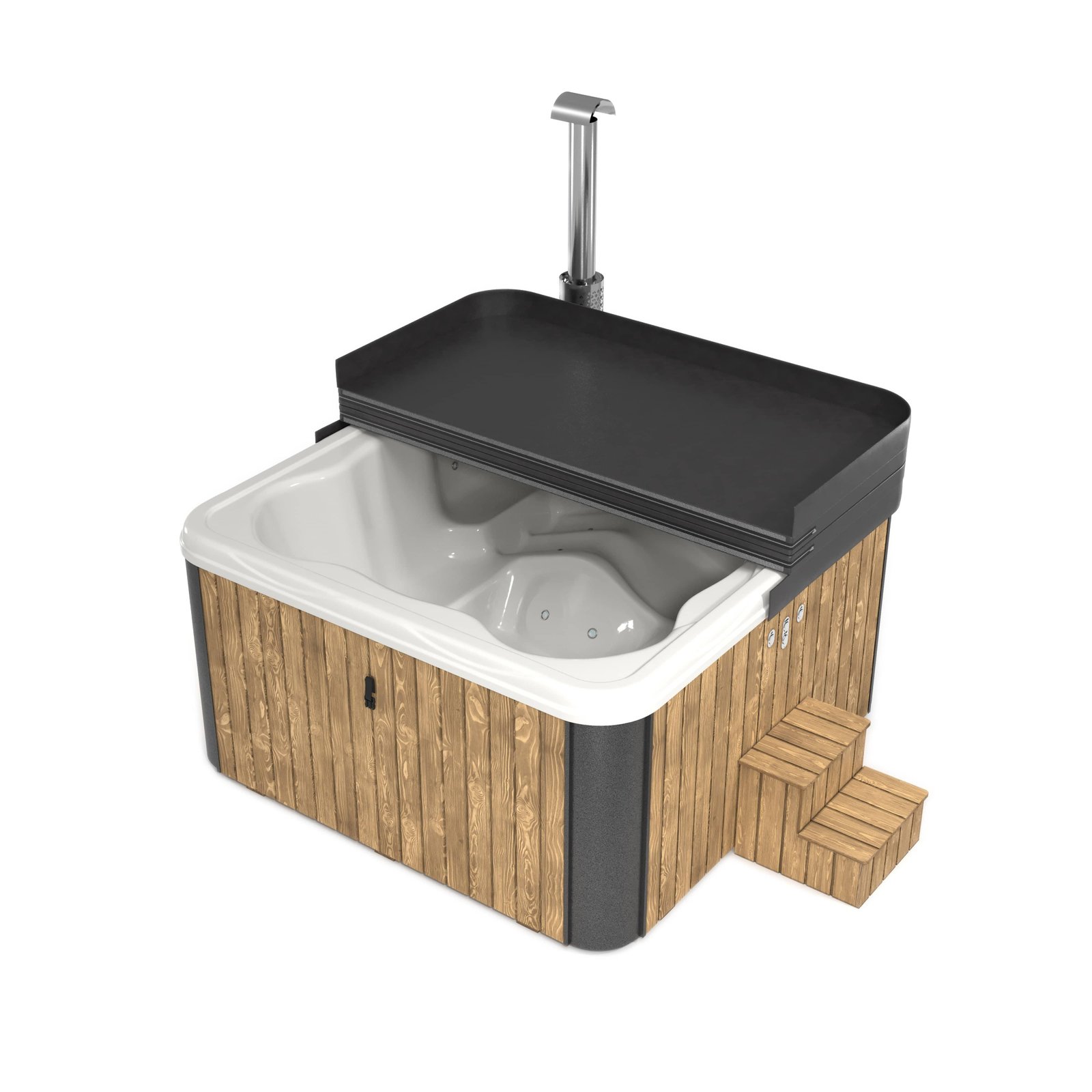 This model has an integrated heater, see the same tub but with external heater if you prefer this arrangement.