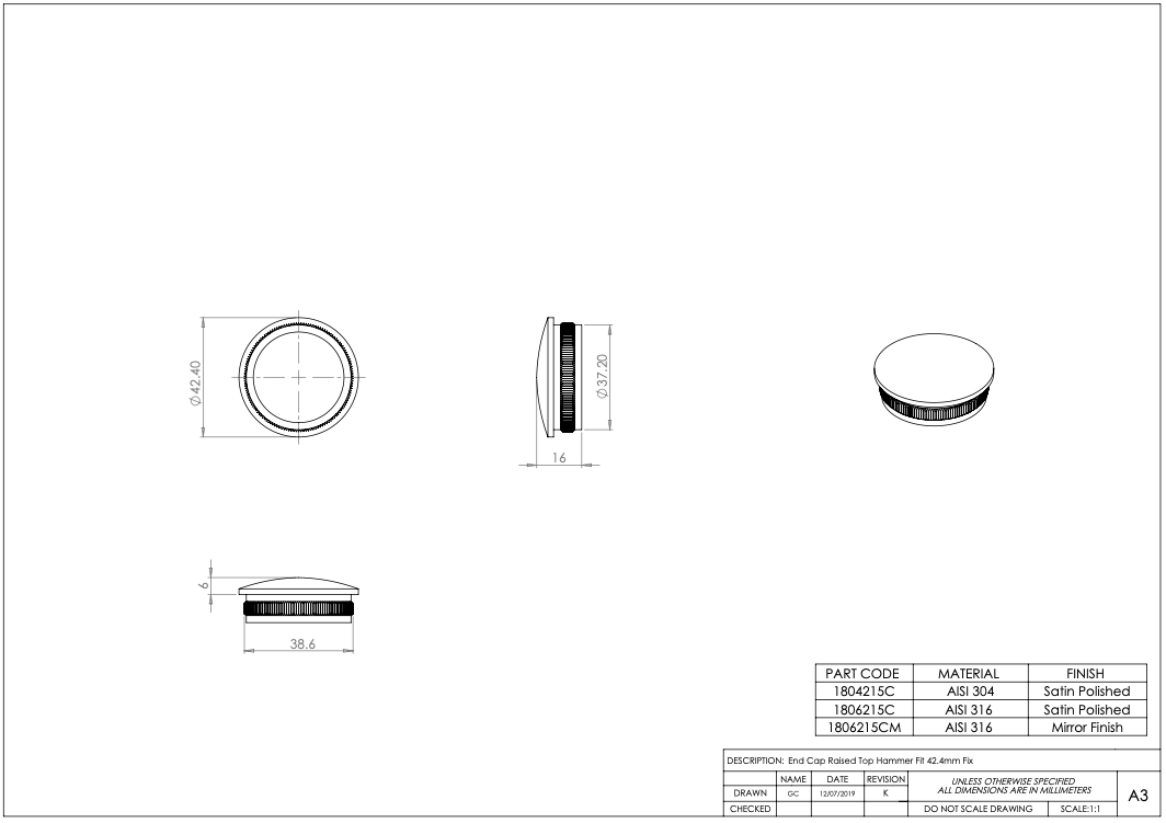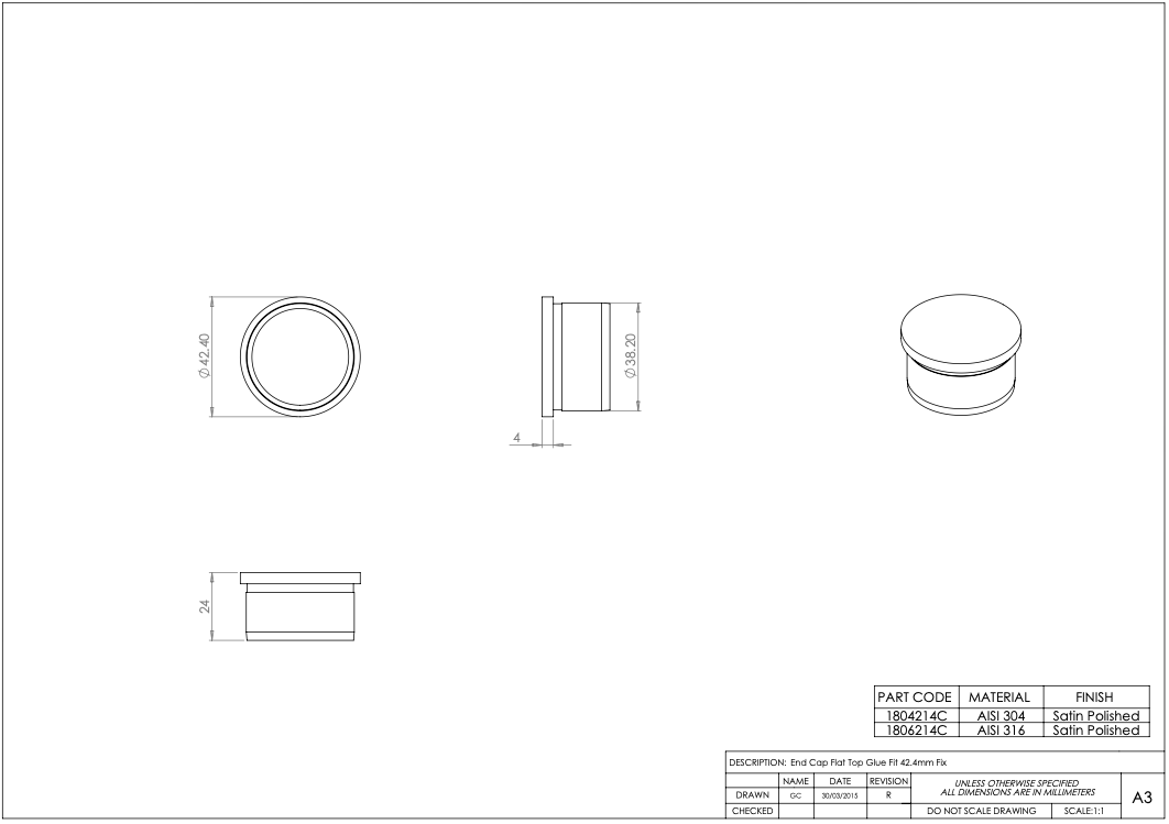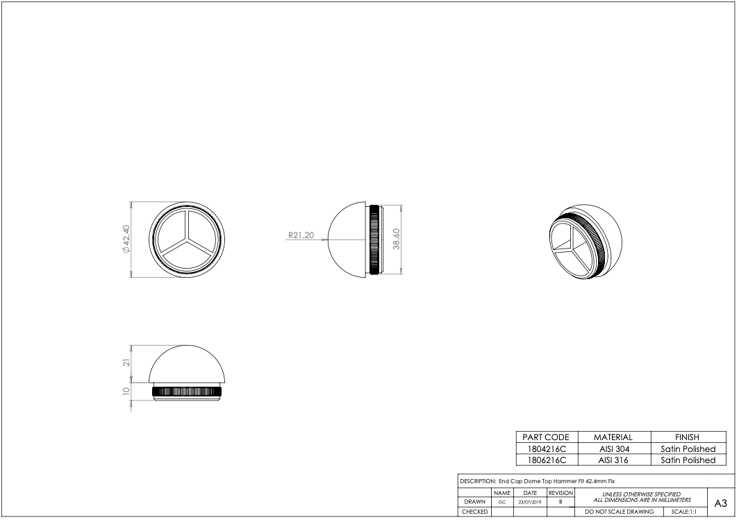 Be the first to review “Handrail or Post End Cap – Choice – 42.4mm – 316l Satin or Mirror Polished”