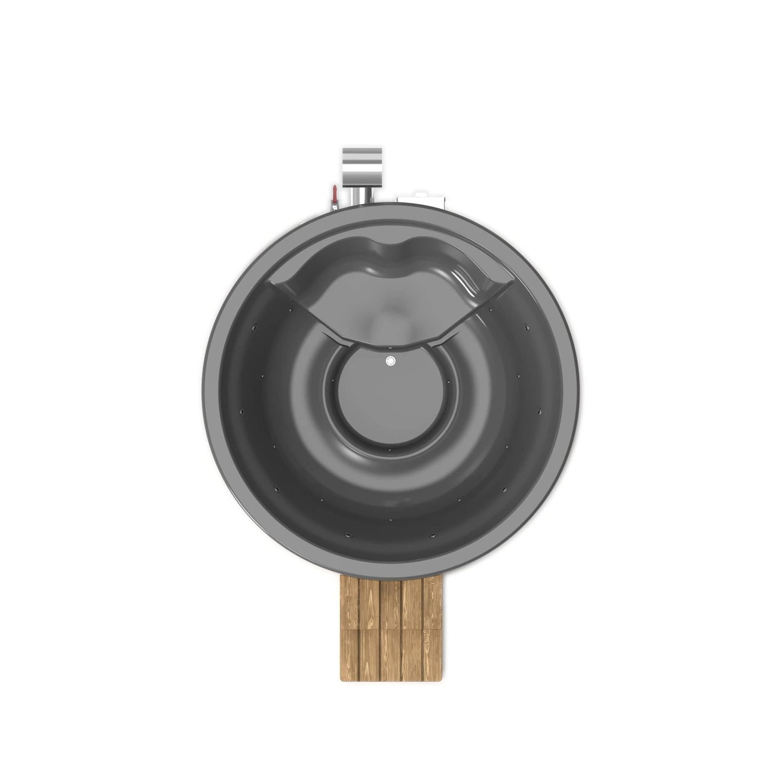 This model has an internal, integrated heater, see our 6-8 person LayzeeTub with external heater if you prefer this arrangement.