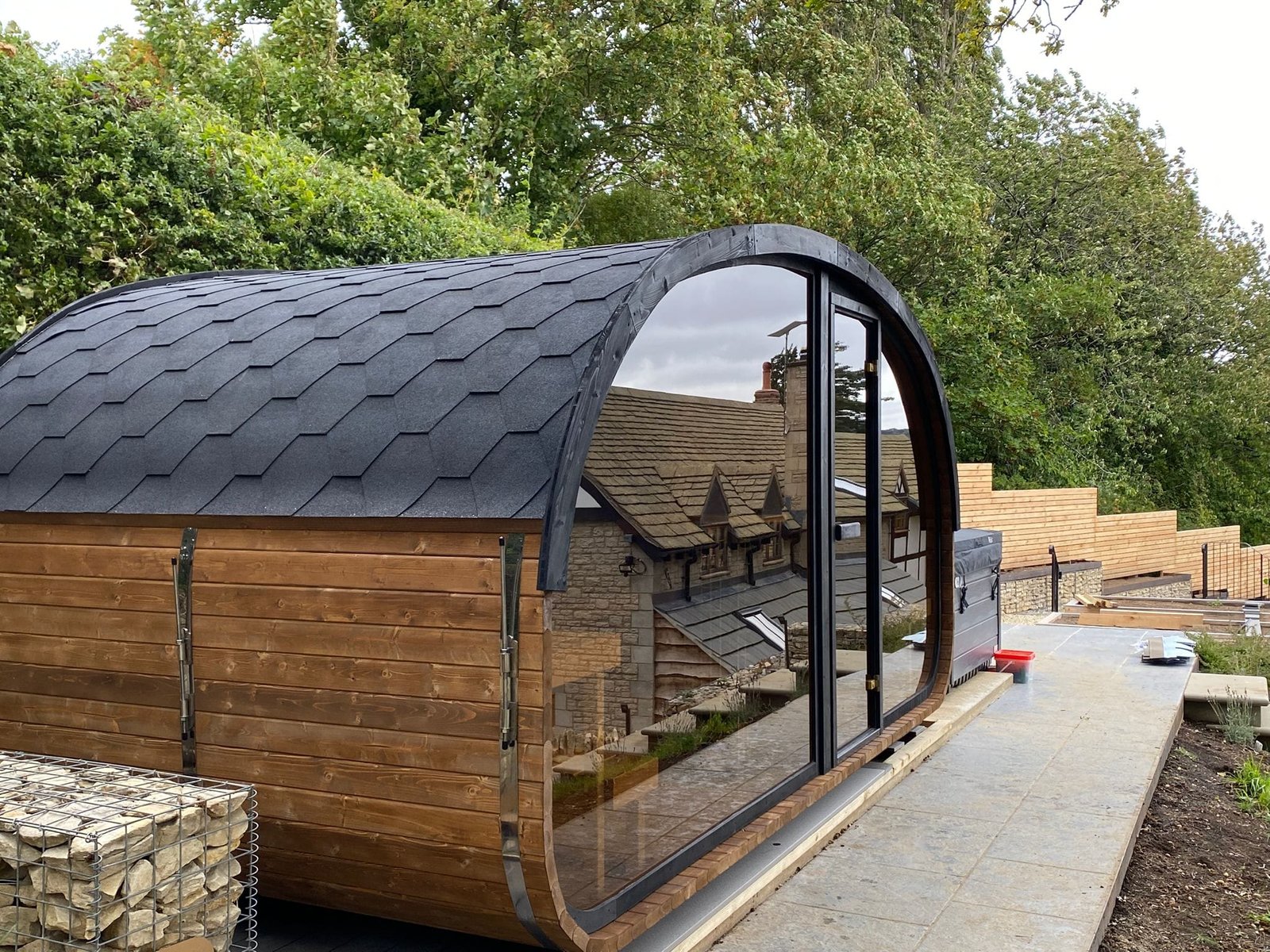 We offer a vast array of options, please enquire if you have a design in mind, we can offer various colours of timber (colours can be viewed below) and roof shingles, various window options and much larger sauna and hot-tub combos, please enquire with our team.