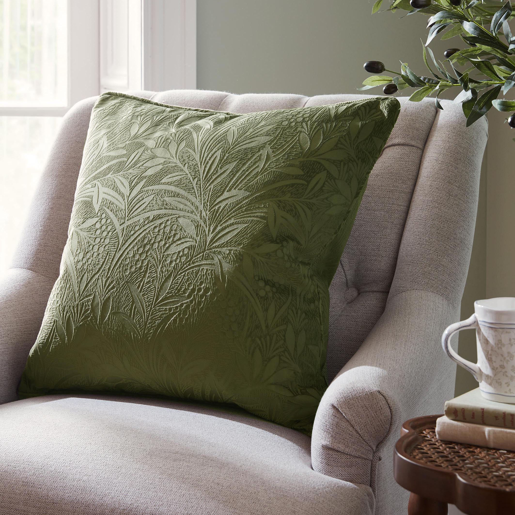 Laura Ashley Barley Embossed 50cm x 50cm Filled Cushion Olive Green