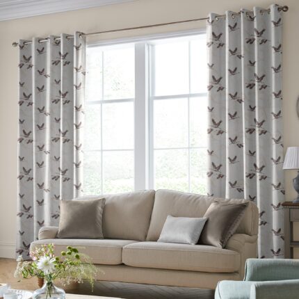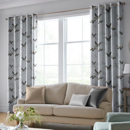 Laura Ashley Abbott Ready Made Eyelet Curtains Steel