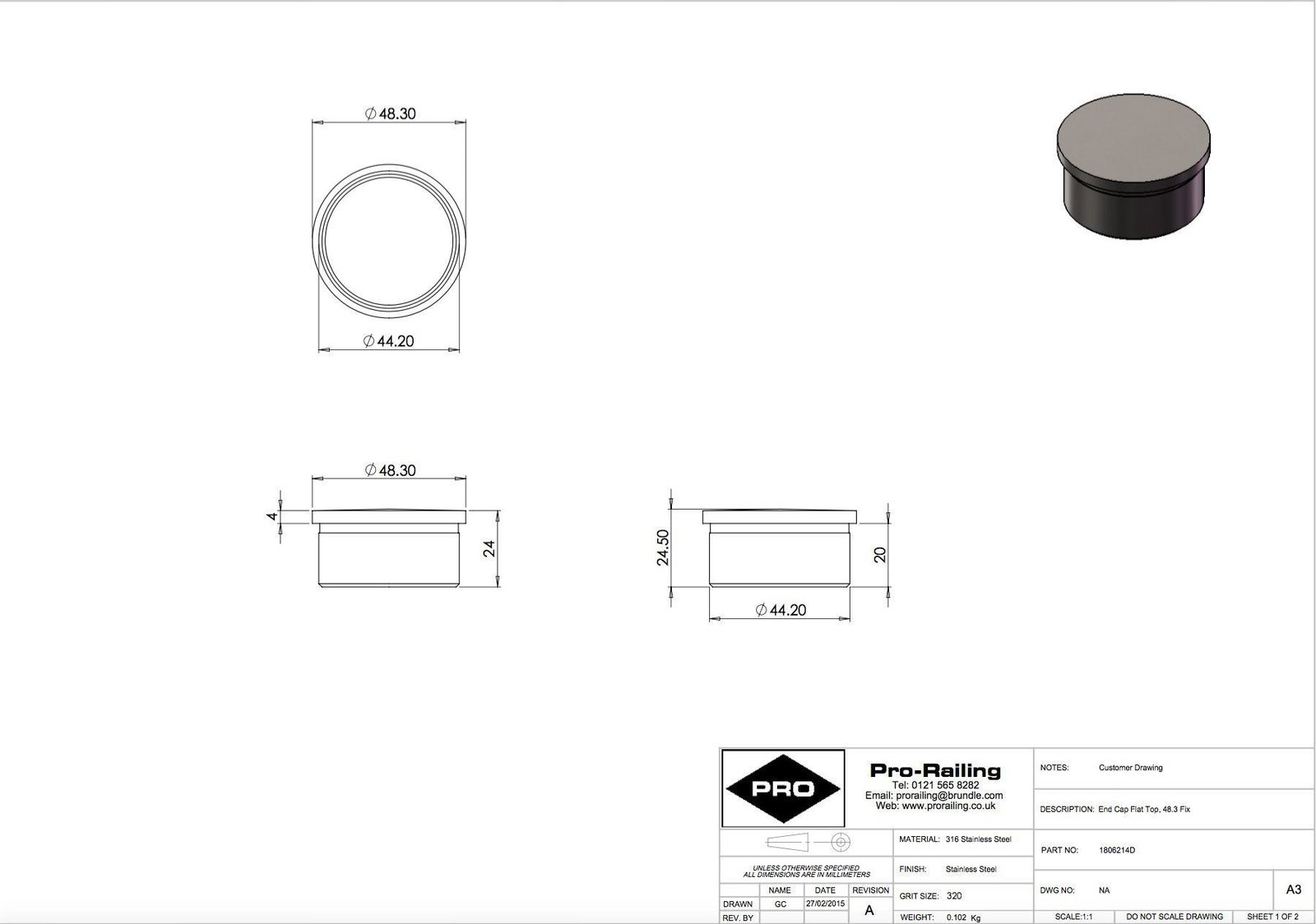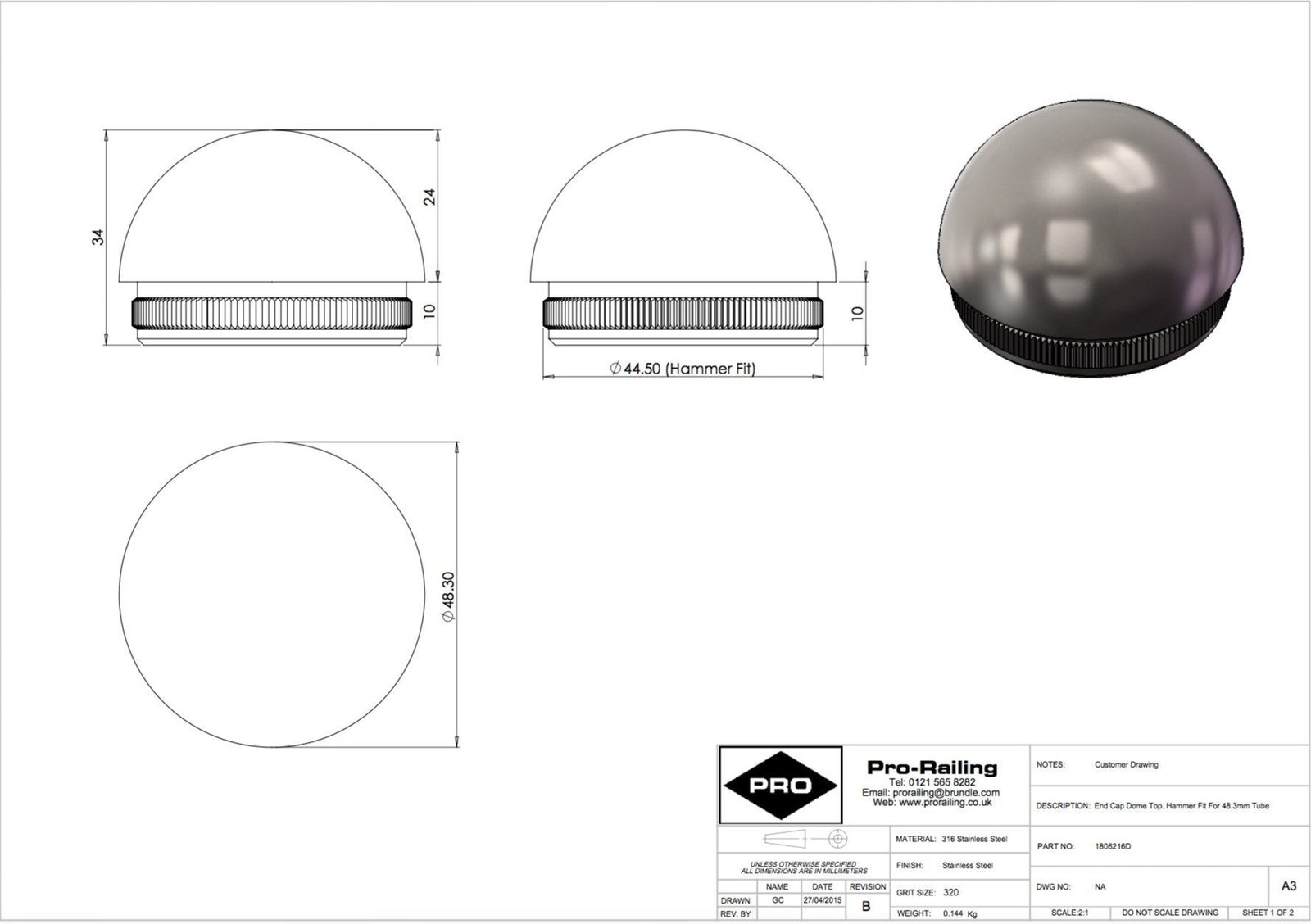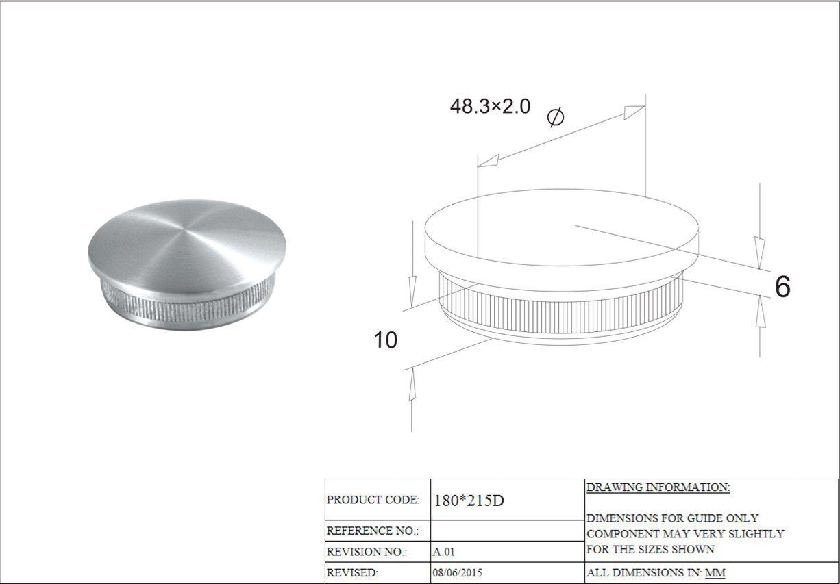 For use with 48.3mm tube or posts but not suitable for our glass mounted slotted tube. Choose from 3 designs. Flat glue fix Raised hammer fit Domed hammer fit