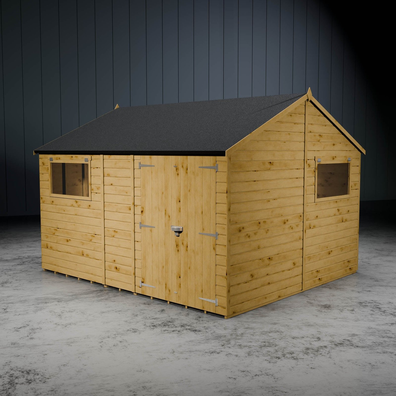 Available in multiple sizes, our Shiplap sheds are versatile and customisable. Our shiplap sheds and workshops feature a modular design, allowing you to customise the placement of doors and windows to your liking and garden layout. Whether you prefer the door positioned at the end of the shed or windows lining a single side, anything is possible.