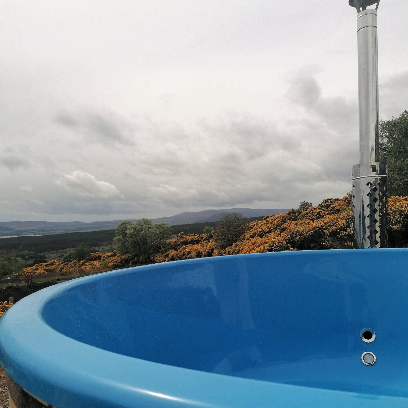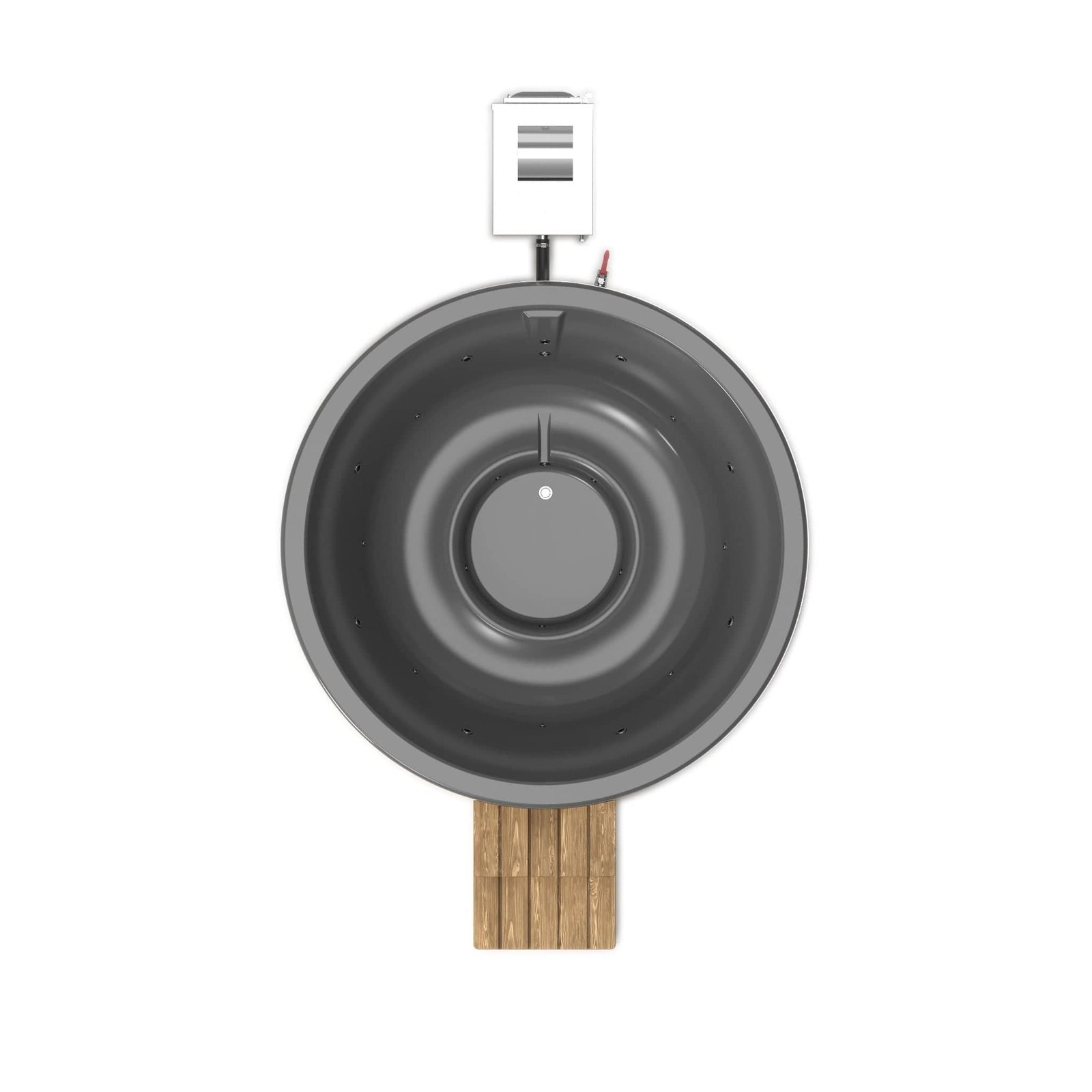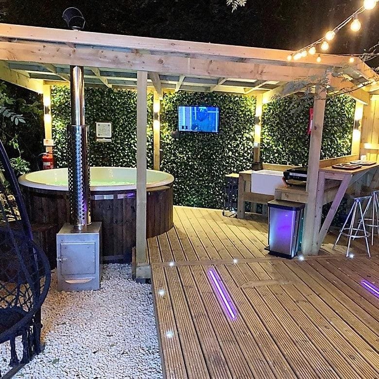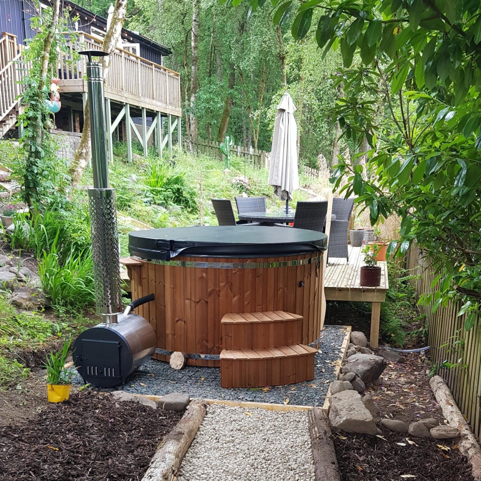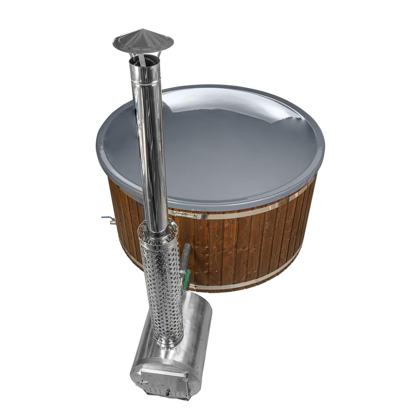 The “René” 200cm 4-8 person Scandinavian Spruce, thermowood or Composite clad, wood fired hot tub with external heater, optional spa systems and other luxurious extras.