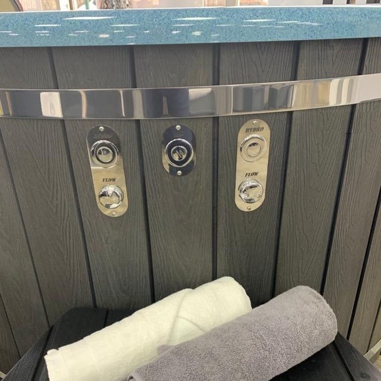 These tubs are clad in Scandinavian spruce, thermowood or composite and are available with an array of extras, an ergonomic liner moulds to your body and the heater is external to the unit on this model providing more space inside for guests, this tub is designed for 4-8 people.
