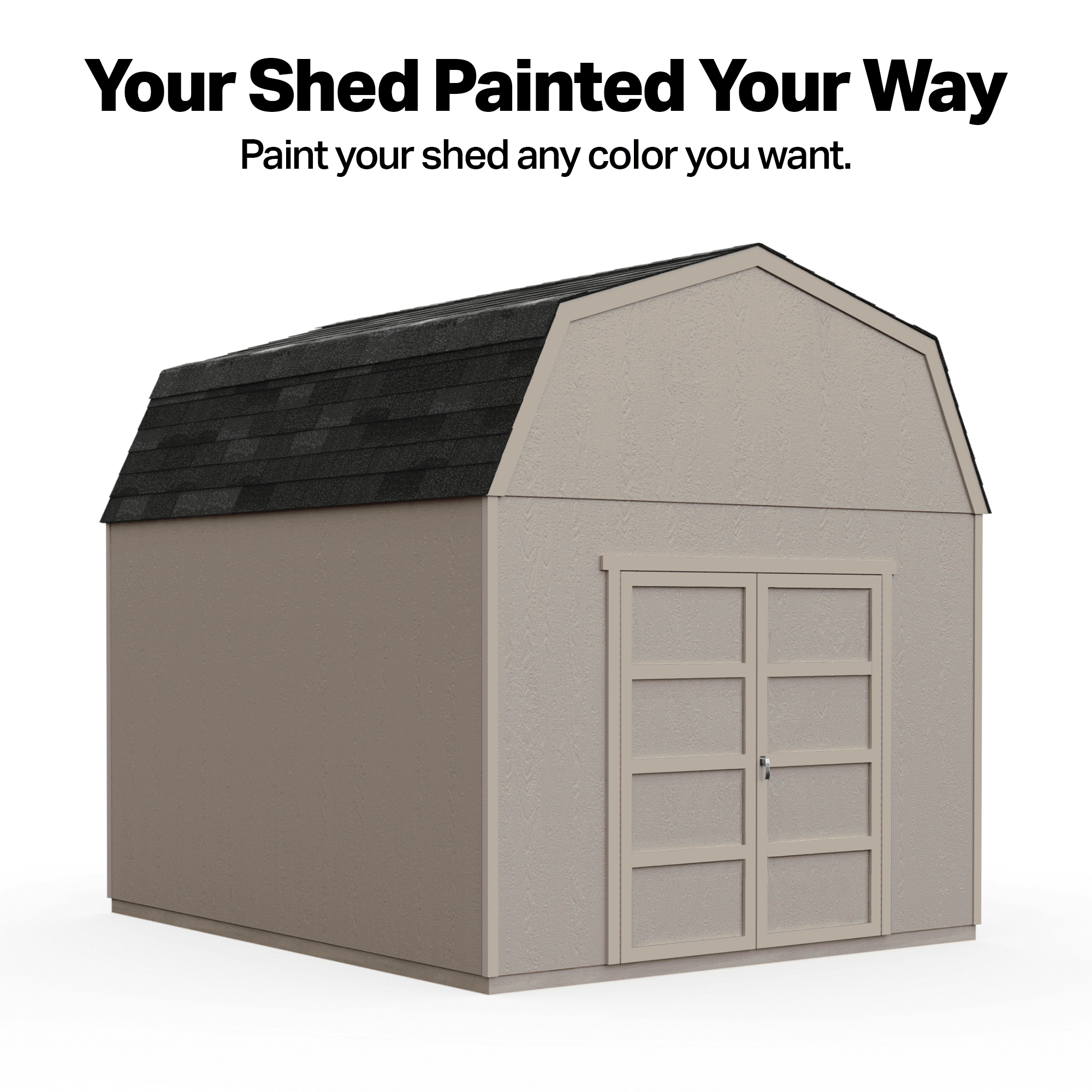 The Sarasota Shed combines spacious storage with a classic barn-style design. Its barn-style roof offers better drainage and extra vertical space, perfect for storing tall equipment. The extra-wide double doors provide easy access to large items, while the rust-resistant locking handle adds an extra layer of security. With a flexible door location, you can place the doors on the front or side to suit your space. Available in multiple sizes to fit your storage needs. Build it yourself to save or choose professional installation for a hassle-free setup.
