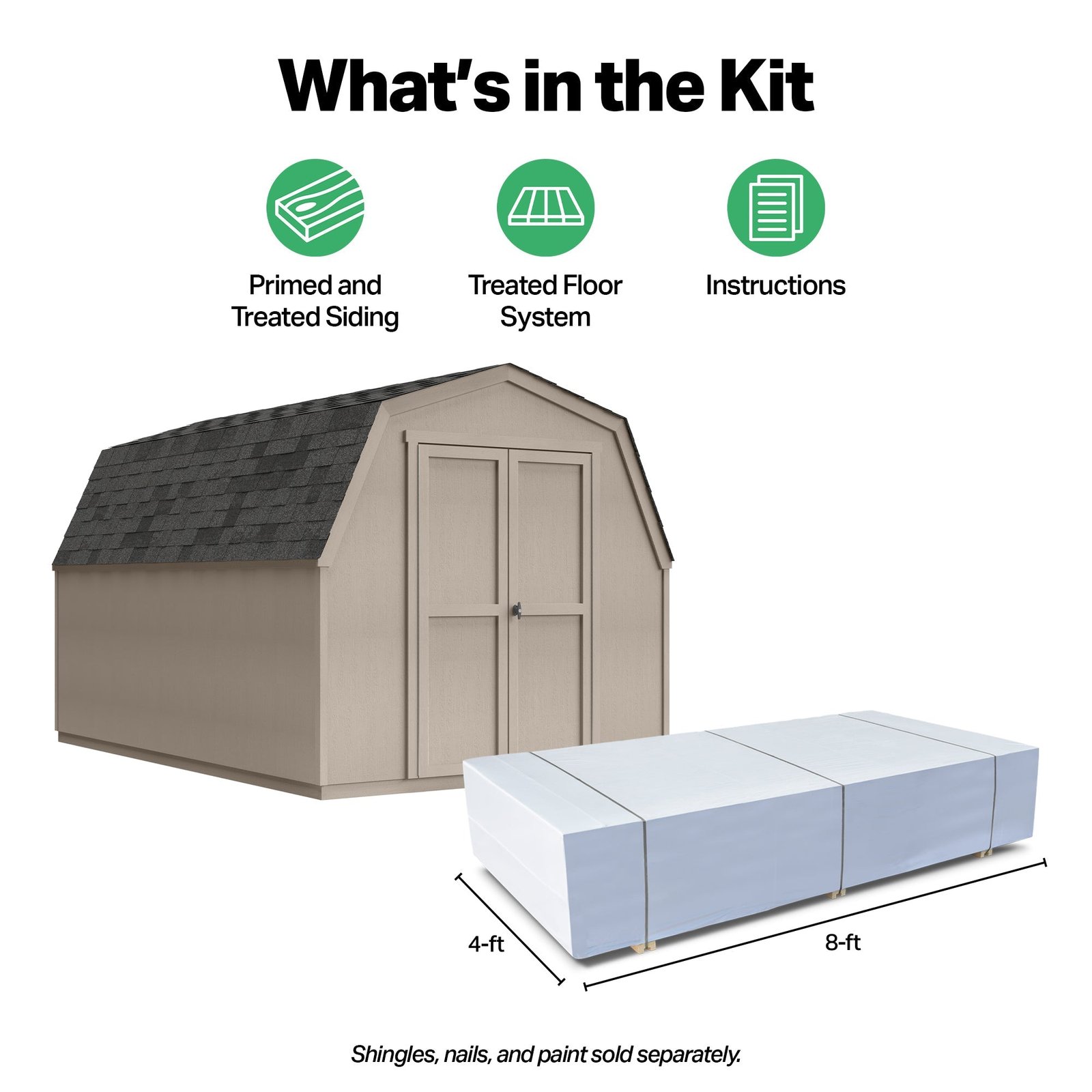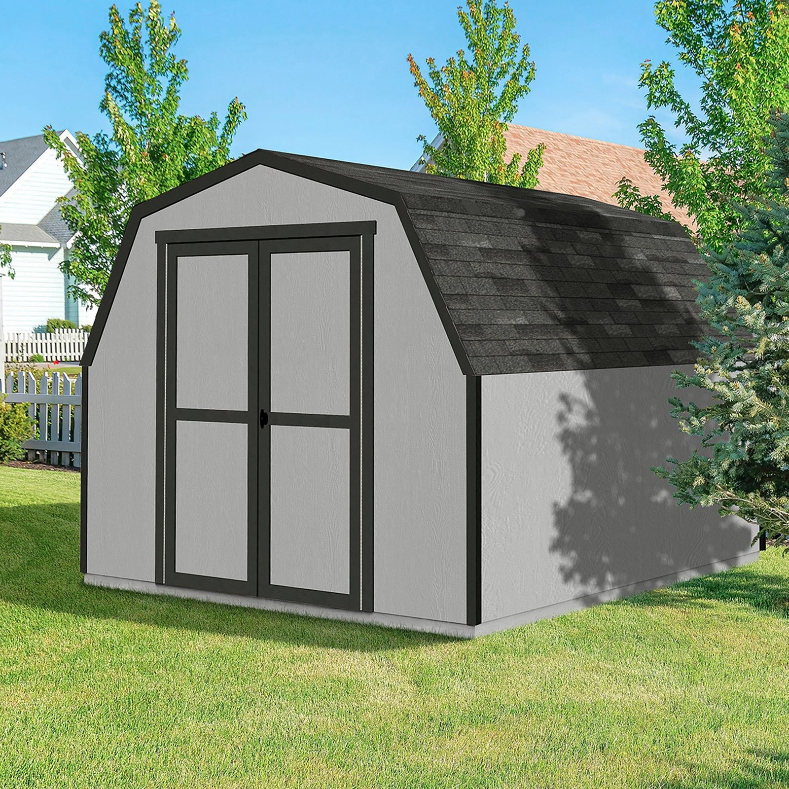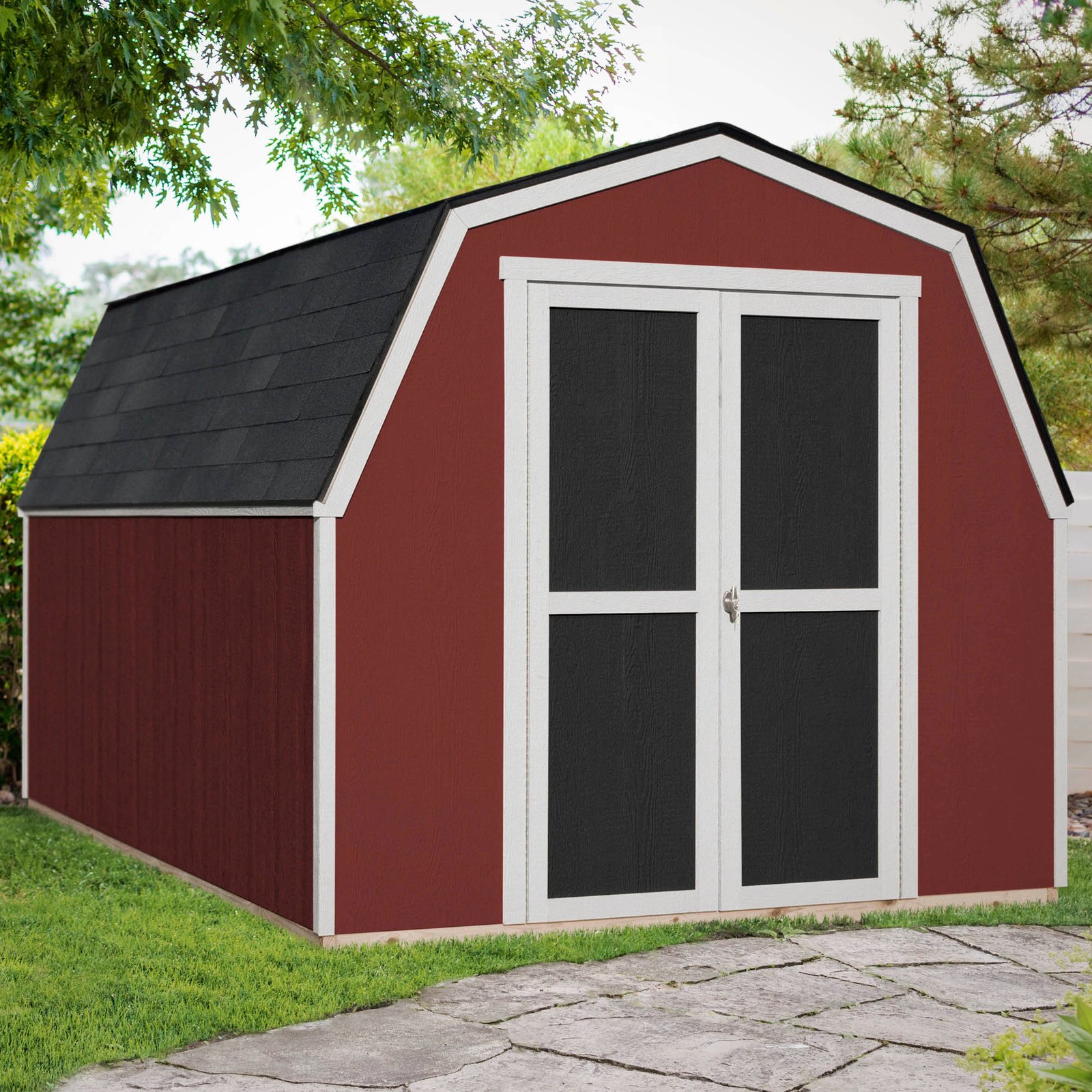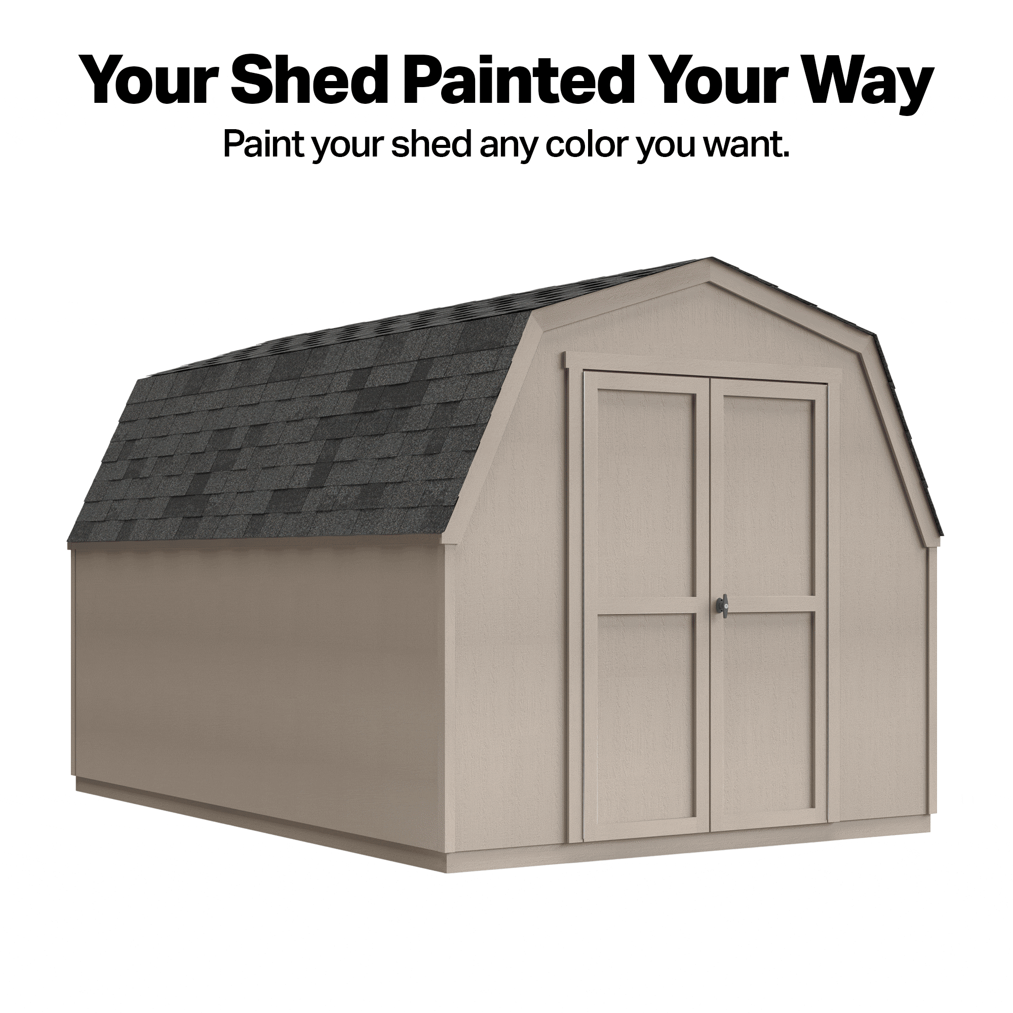 The Shelton Shed blends classic barn-style charm with practical storage. Its barn-style roof provides extra vertical space, perfect for storing tall tools and equipment. The 48-inch wide double doors offer easy access, while the rust-resistant locking T-handle keeps your items secure. Available in three different sizes to fit your storage needs. Build it yourself to save or choose professional installation for a hassle-free setup.