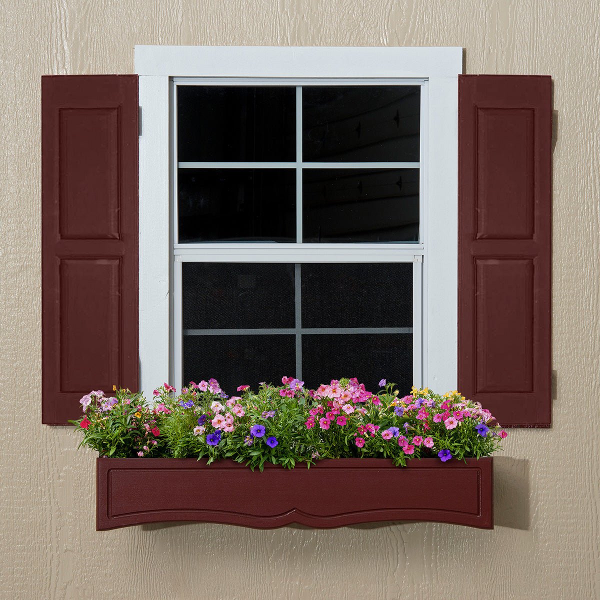 Add charm and airflow to your shed with this functional window, cedar flowerbox and matching shutters set. The 16″ × 24″ aluminum-framed window features tempered glass, a lock and a screen to let in fresh air while keeping insects out. Coordinating cedar shutters and a flowerbox with a liner completes the look, giving your shed a finished, home-like touch that enhances curb appeal and style.