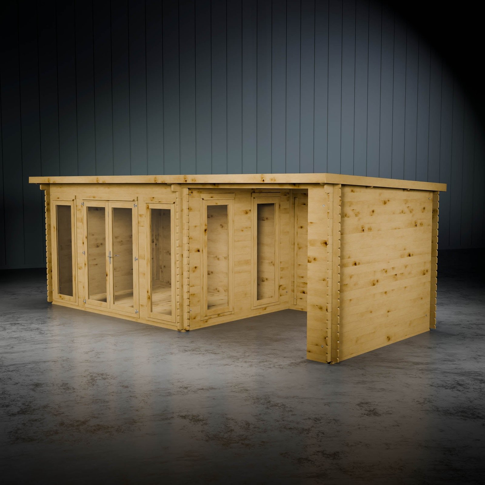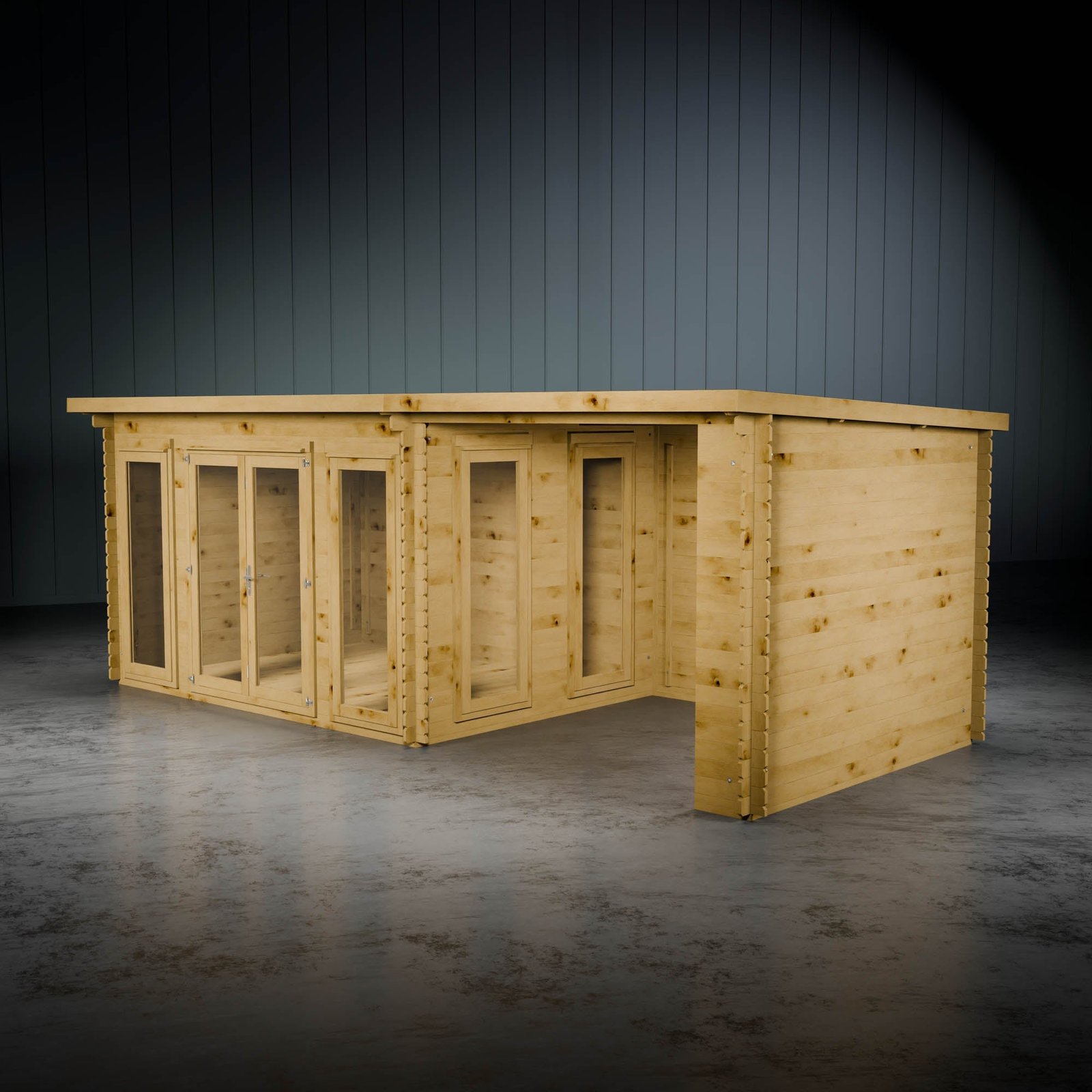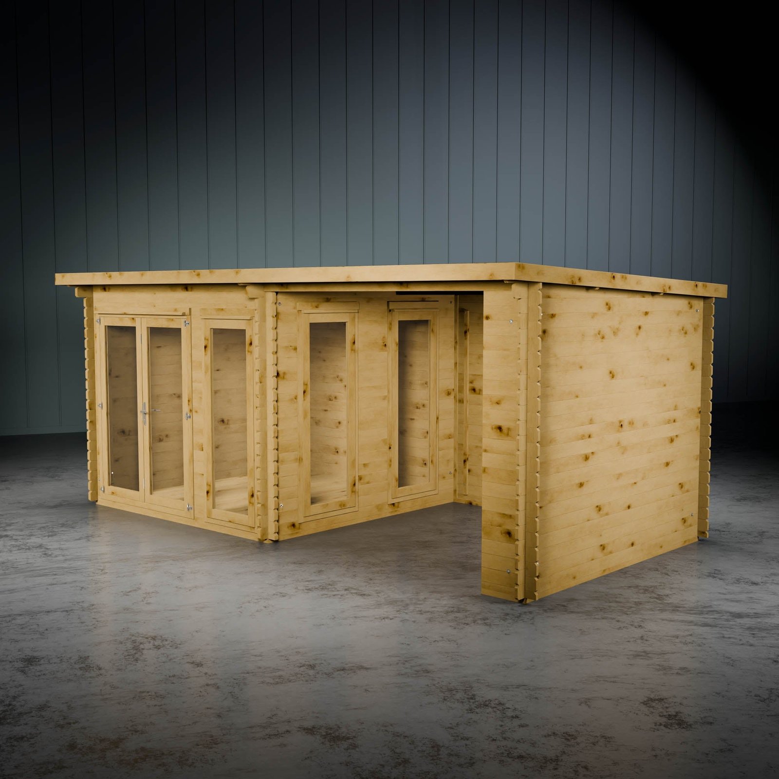 By incorporating a patio area, you can enjoy the outdoors while staying sheltered. Perfect for relaxation, it can transform into a cosy outdoor space, a hot tub hideaway, or a shaded area for children to play away from the sun. Please note, you can place the patio on either side of the building to fit your preferences. The log board thickness for the patio area is 28mm.