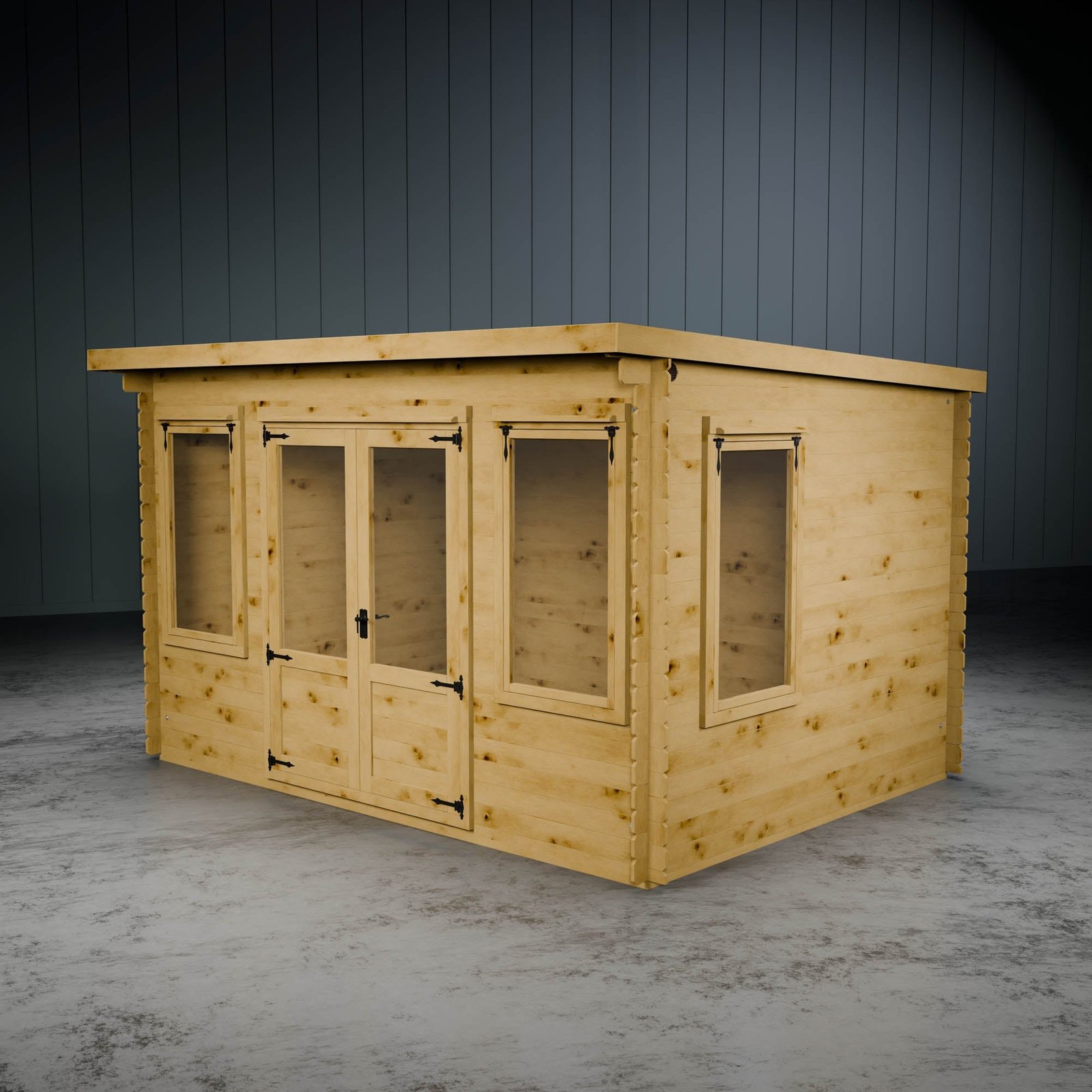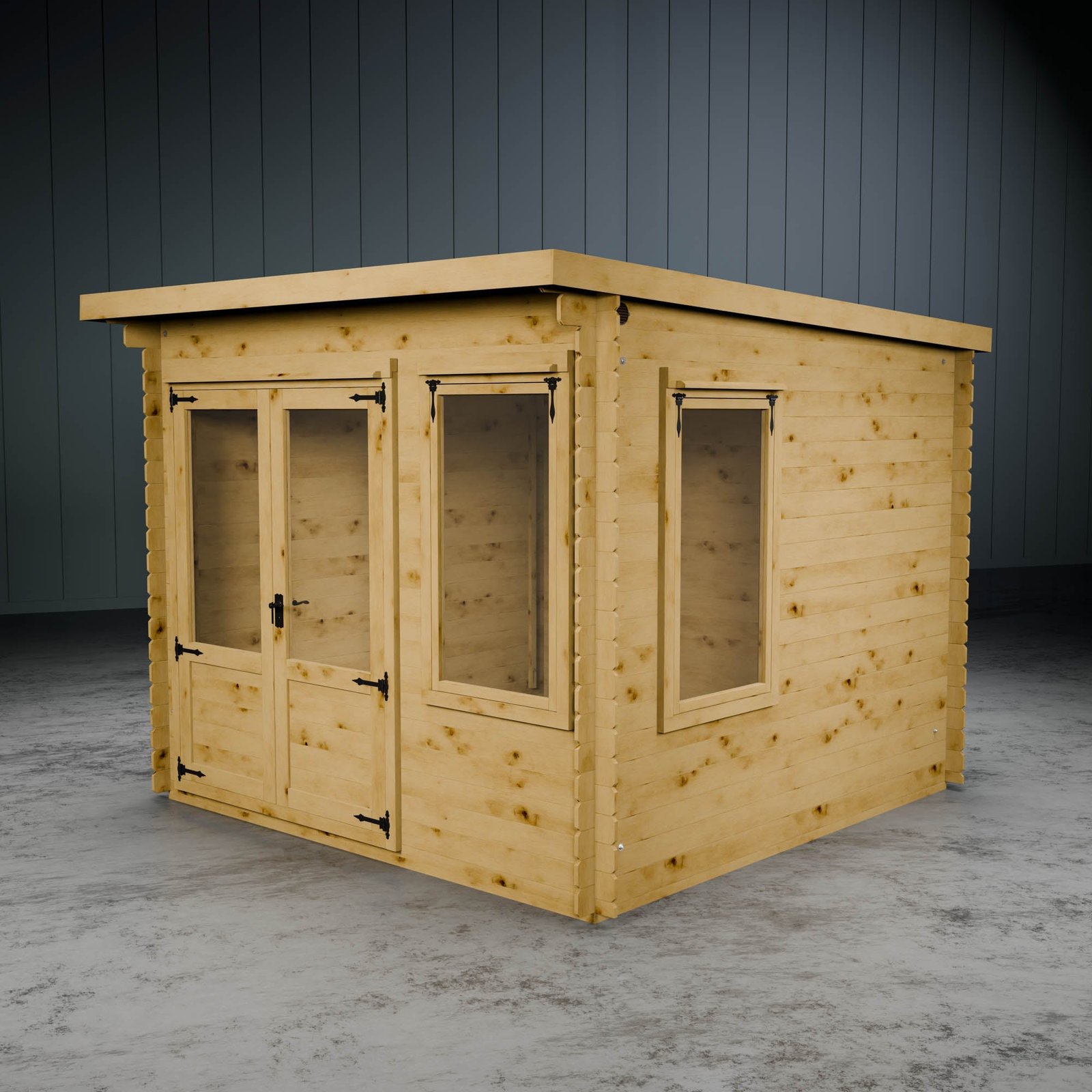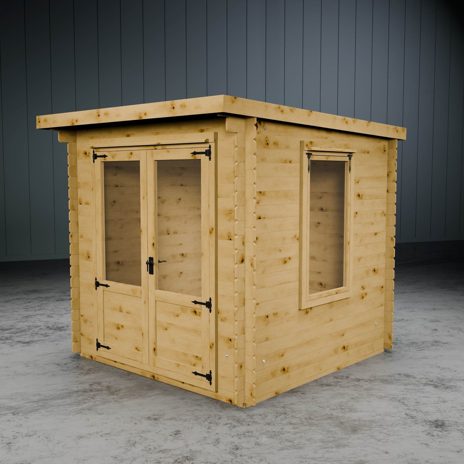 Looking for somewhere in the garden you can go to relax and unwind? The Value Pent Log Cabin is a compact garden room that won’t take up too much of the garden. Featuring a large opening window and half-glazed double doors, the interior is bright, airy and welcoming. With space for comfy chairs, a coffee table and shelving, this cabin is ideal as a reading or hobby room, or as a home office. The stylish and contemporary pent roof design not only looks great, but will also ensure rainwater drains off the back of the building, to avoid the build-up of water.