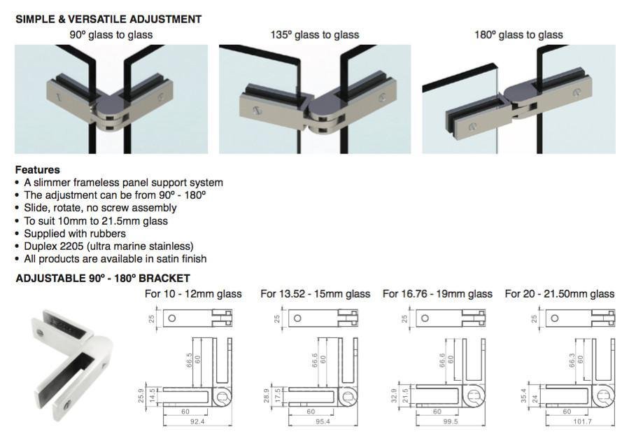 This wall bracket is ideal to be used with frameless glass or glass spigot applications. It is suitable for 10-21.5mm glass application, simply pick your voice of size from the drop down box.