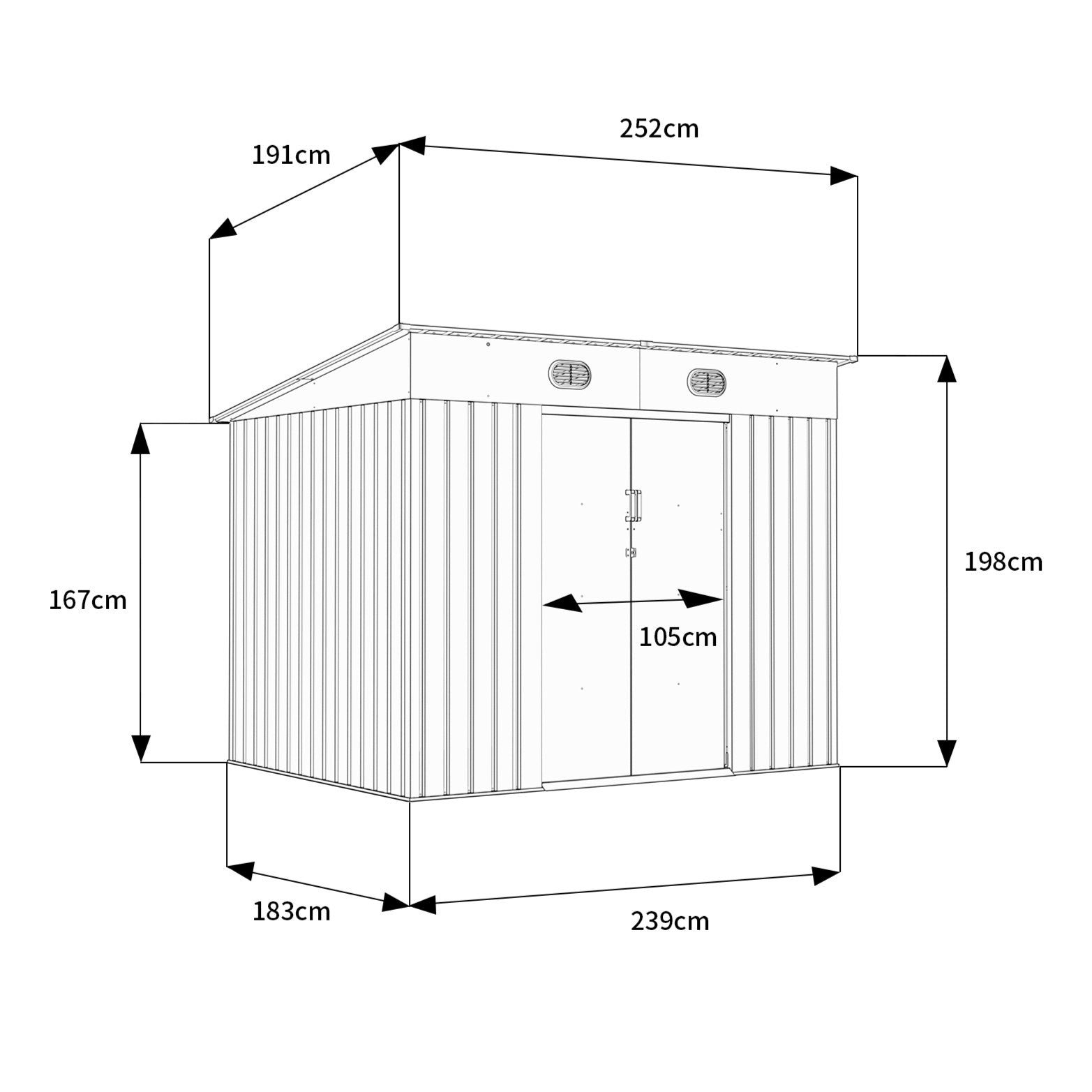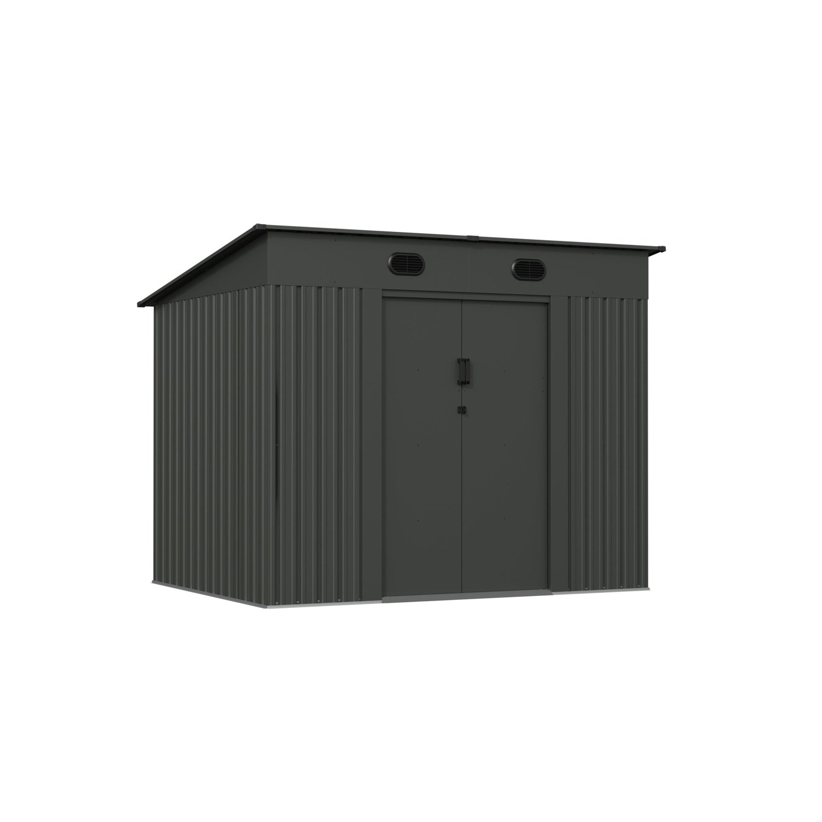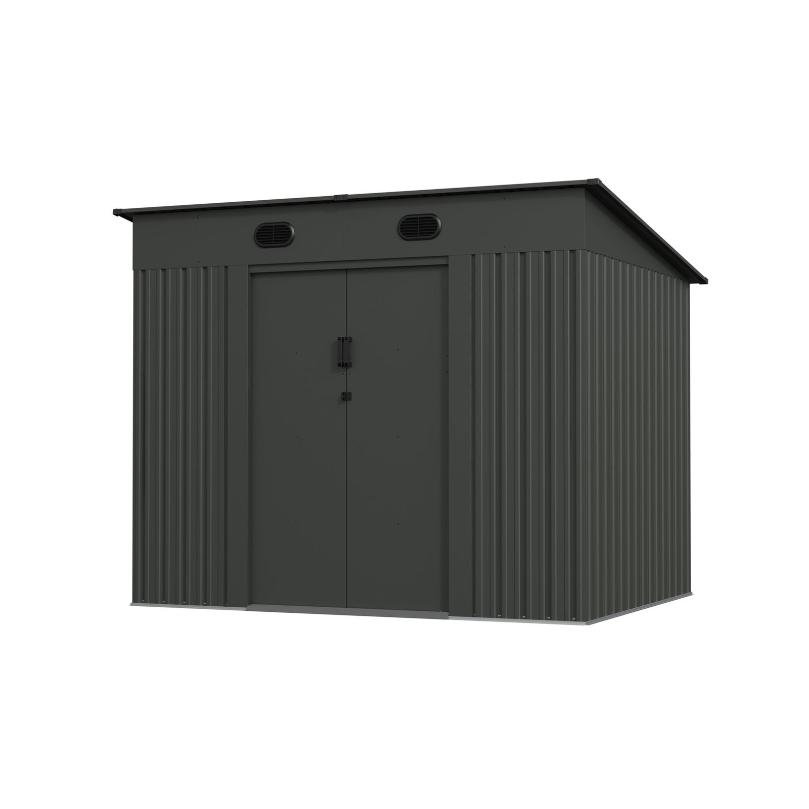 Designed for strength and convenience, it can withstand strong winds (up to 100km/h) and support heavy snow loads (up to 120kg/㎡). Double sliding doors provide wide, secure access, and a lockable stainless steel handle keeps contents safe. Integrated vents enhance airflow, helping prevent condensation and moisture build-up inside the shed.